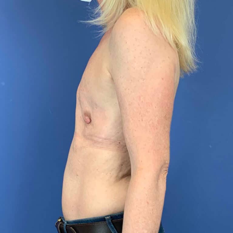 60-year-old female who had a tough go with implants in the past.   I first met her at the “before” stage of these photos.   Elsewhere, she had a breast augmentation with subglandular implants complicated by capsular contracture.   She had capsulectomy and her implants removed elsewhere, a year before her presentation to me.   She was noted to have severe scar deformity on both breasts and very thin breast tissue.  I performed breast augmentation with 470 cc HP Sientra implants as well as fat transfer using abdomen fat to help fill the areas of scar contracture.   The after photos are at one year and are incredible if I do say so myself.   This result exceeded my expectations.