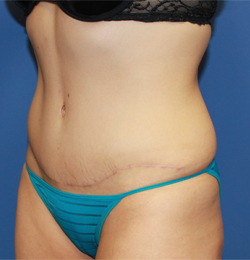 Description: The patient has had 3 children. She is 1 year after full tummy tuck.