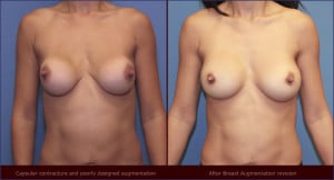 Capsular contracture is the hardening of the breast after breast implants. The breast implants themselves don’t harden, just the scar tissue (capsule) around the implant. There can be pain associated with capsular contracture. The implant becomes more palpable and often takes on a rounder shape. Severe disease can cause significant distortion of the breast shape.